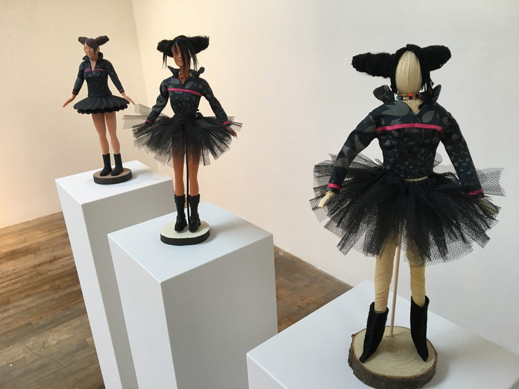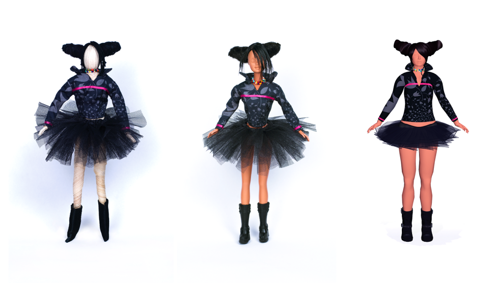 In Generations of Play, a triptych, I add a third “doll”: my avatar. Each are dressed alike, and each, like the traditional corn-husk doll, have no face. Generations of Play, draws a link between the corn husk doll, the Barbie, and the avatar, all playthings that allow us to imagine ourselves in other bodies, with other abilities and limitations. I think about it as, “What my ancestors played with; what I played with; and what my descendants will play with.” This piece helps to illustrate that timeline I’ve been imagining, the one that stretches from the deep past to the far future, with Indigenous people alive and kicking along its entire length.