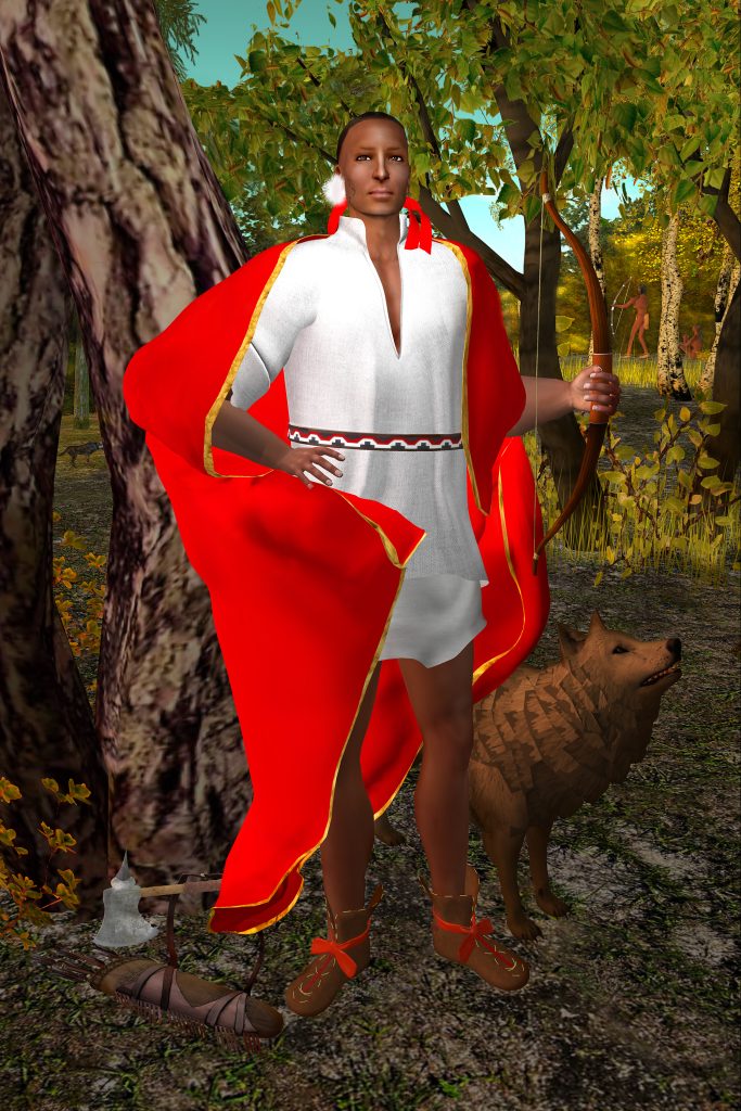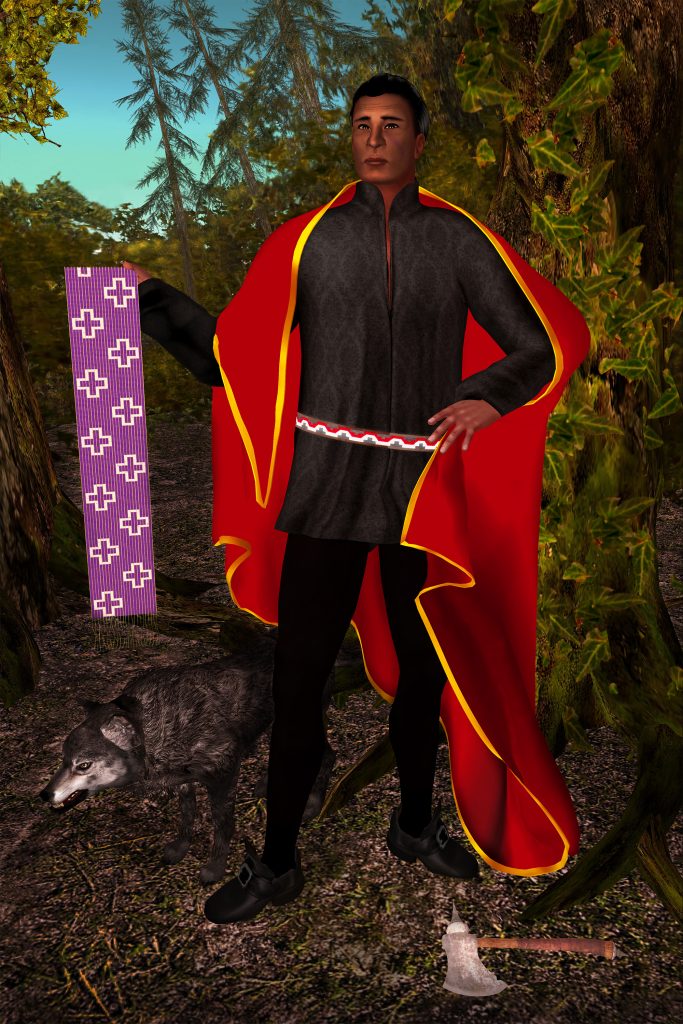 The Four Kings, Revisited, is a series of four framed machinimagraphs based on portraits of the so-called Four Indian Kings painted by Jan Verelst.  Commissioned in 1710 by Queen Anne to commemorate her meeting that year with a delegation of four Iroquois men, they are considered the earliest surviving oil portraits from life of Indigenous North Americans.