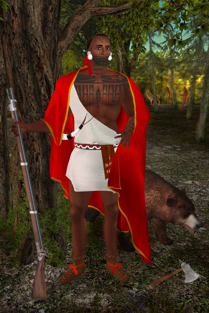 In my practice, I ask what concepts, memories and things from the past can we discard, and what do we want to bring with us into the future? These portraits represent a moment when a diplomatic relationship with the Haudenosaunee was of great importance to the Crown, so important that printed versions of the paintings were sent to North America for mass distribution. They also remind us of the adventurous spirit of our ancestors, who were unafraid to travel across the great water, visit a strange culture, and meet their leader. And they brought their culture and values with them. A Mohawk in England is still a Mohawk.